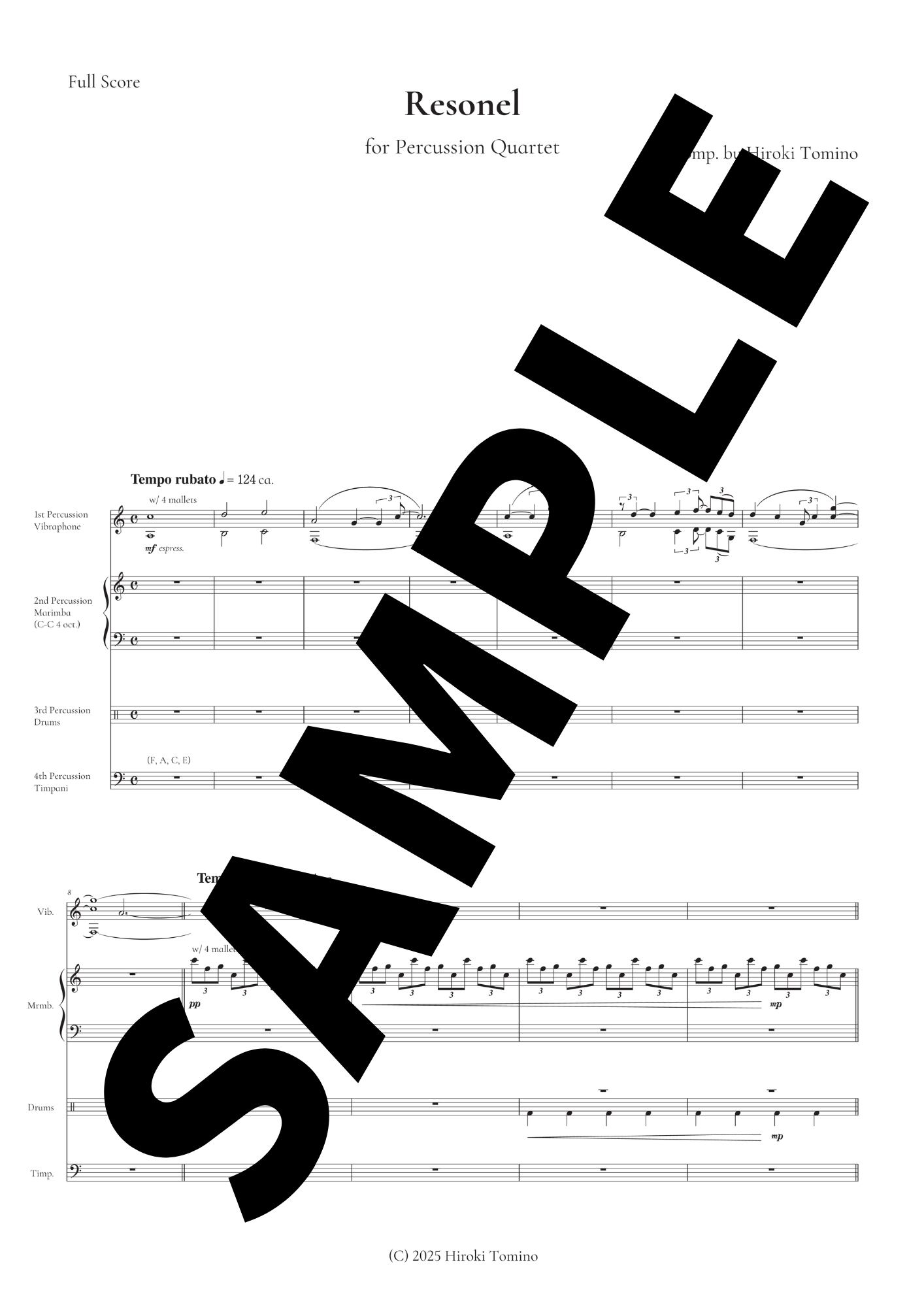 English Title: Resonel for Percussion Quartet