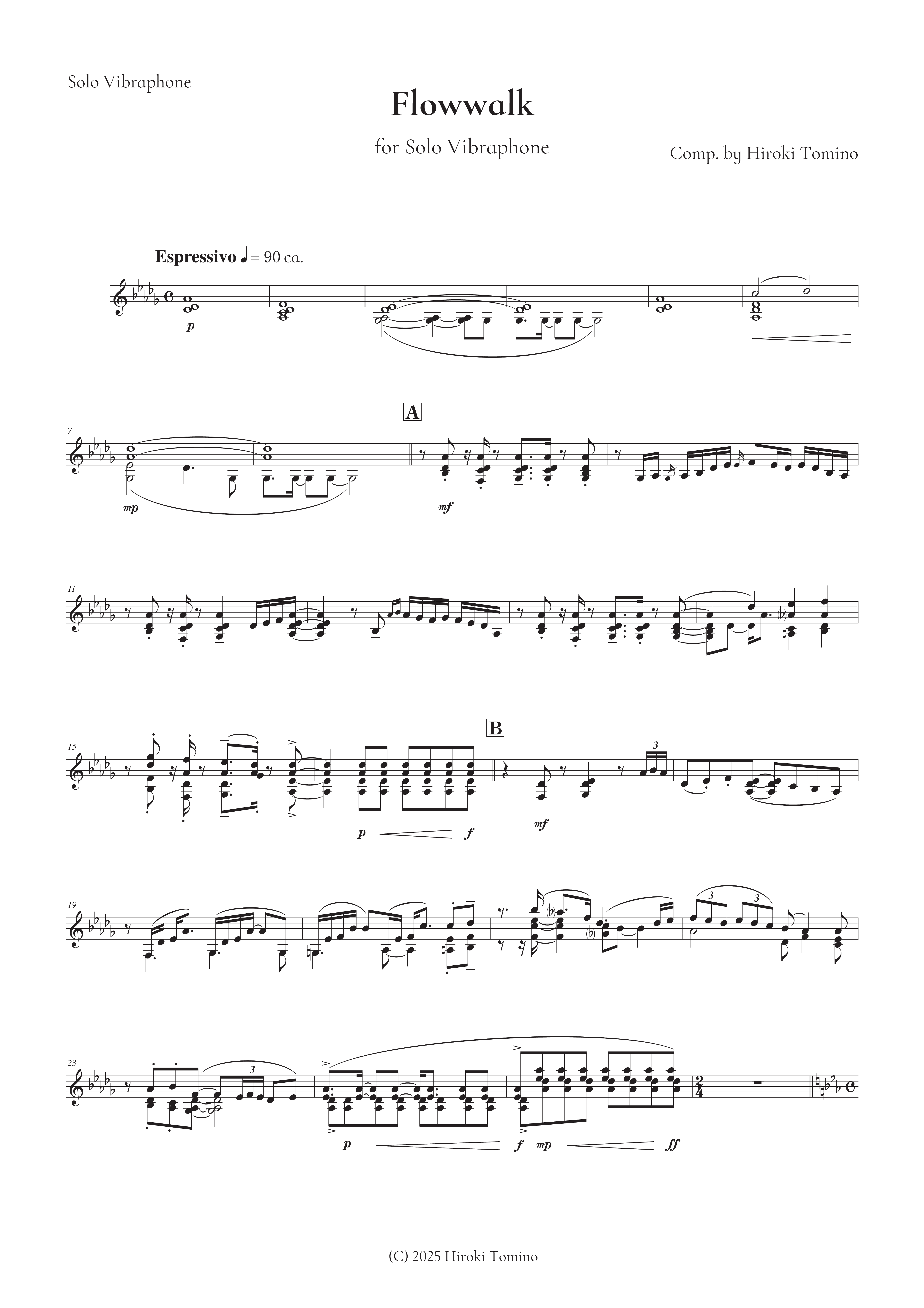 “Flowwalk” is a vibraphone solo piece inspired by peaceful walks.