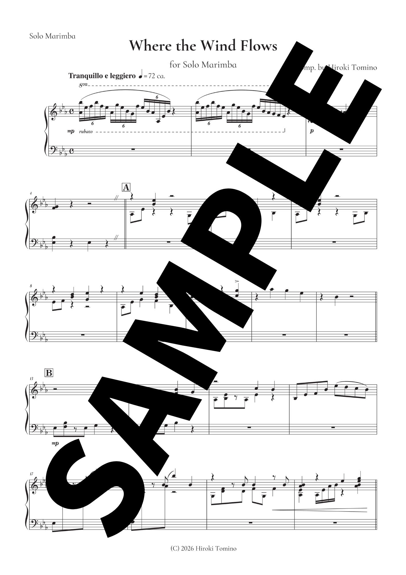 English Title: Where the Wind Flows for Solo Marimba