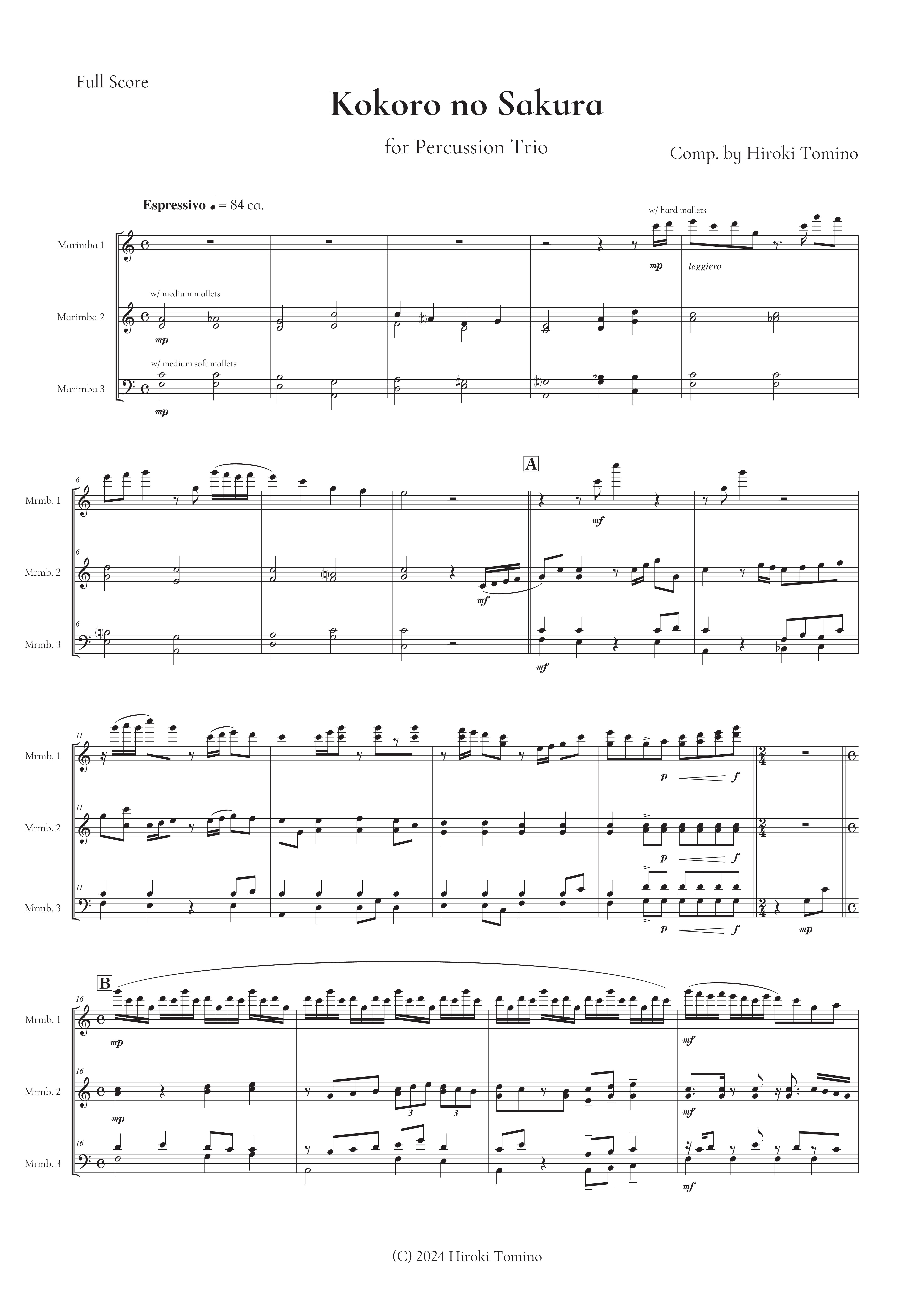 Japanese Title: 打楽器3重奏のための「心の桜」